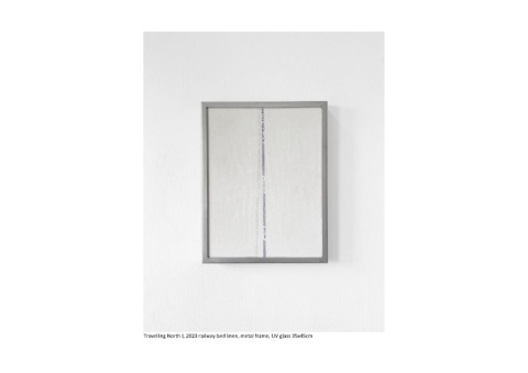 Travelling North I, 2023 railway bed linen, metal frame, UV glass 35x45cm