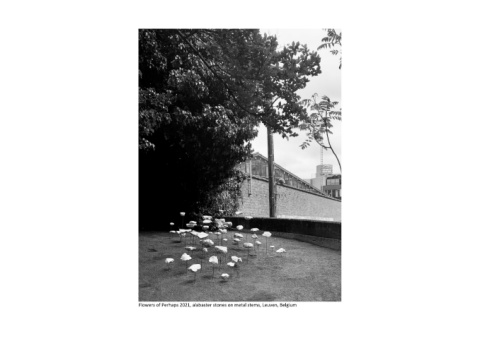 Flowers of Perhaps 2021, alabaster stones on metal stems, Leuven, Belgium