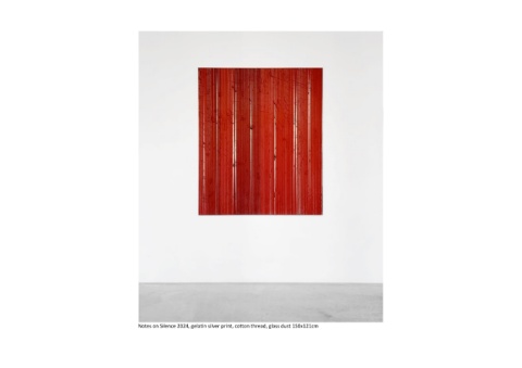 Notes on Silence 2024, gelatin silver print, cotton thread, glass dust 150x121cm